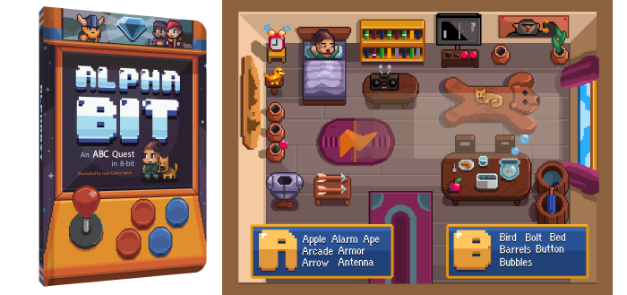 Alphabit! is a book inspired by my love for Super Nintendo and seek and find books. Follow the adventurer and learn new words!